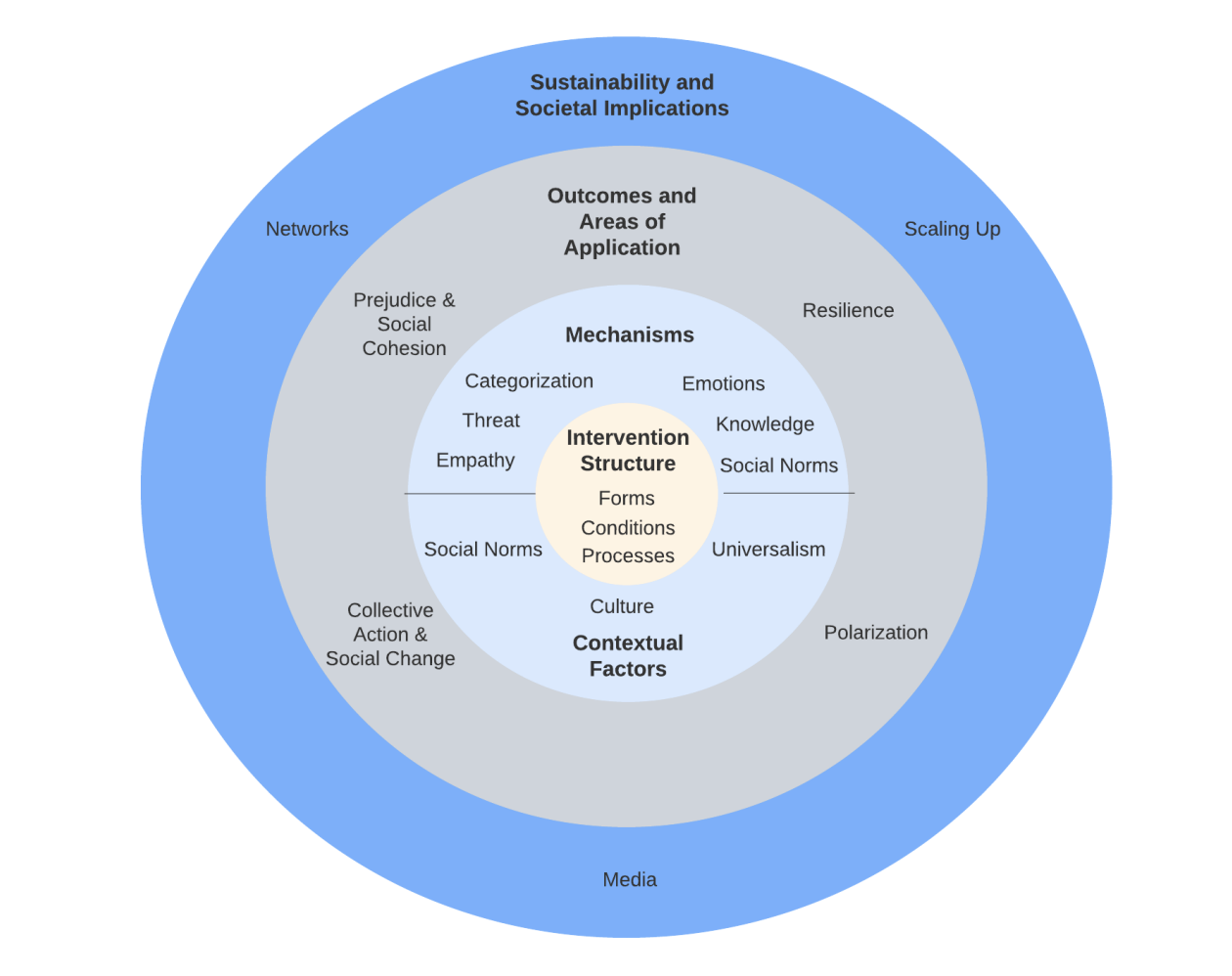 While managing the Reconciling Conflicts and Intergroup Divisions Lab at George Mason University, I collaborated with colleagues to study the link between contact theory — one of the most prominent theories from social psychology about how interaction between antagonistic social groups can reduce prejudice between them — and democratic development. Through an in-depth literature review, workshops with democracy and governance development practitioners, and in-depth field research, the study evaluated the relevance of the contact theory evidence base to democratic development, and gathered evidence on how intergroup contact can facilitate collective action, social inclusion, and cohesion to support more democratic societies. The project produced insights on how to structure intergroup contact and dialogue experiences in ways that reduce threat perceptions, promote perspective-taking, and support cross-group relationship-building, and foster shared identity in line with constructive democratic engagement.